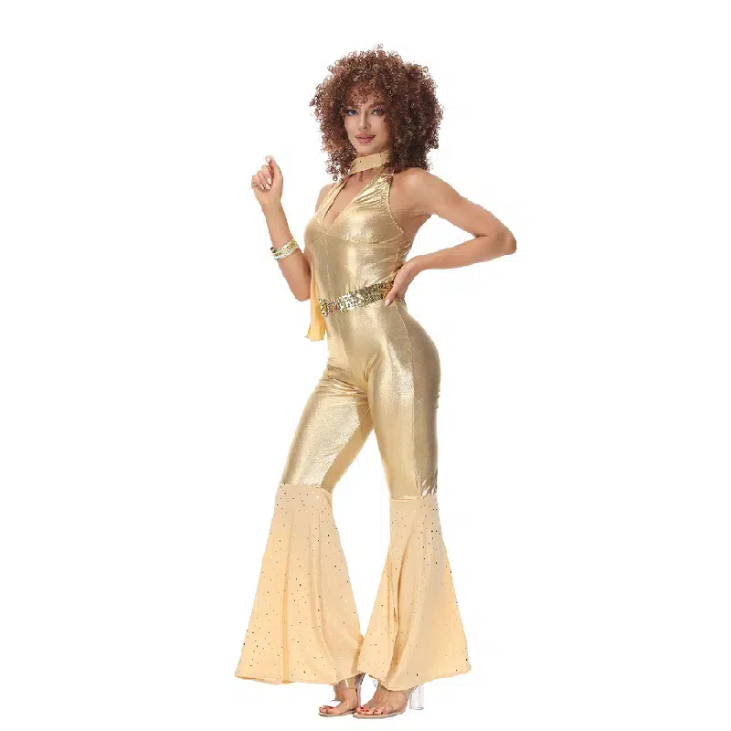 Chaque détail du déguisement, de la chemise dorée aux accessoires assortis, vous plongera dans l’ambiance festive des années 70, faisant de votre cadeau un choix parfait pour la Saint-Valentin.