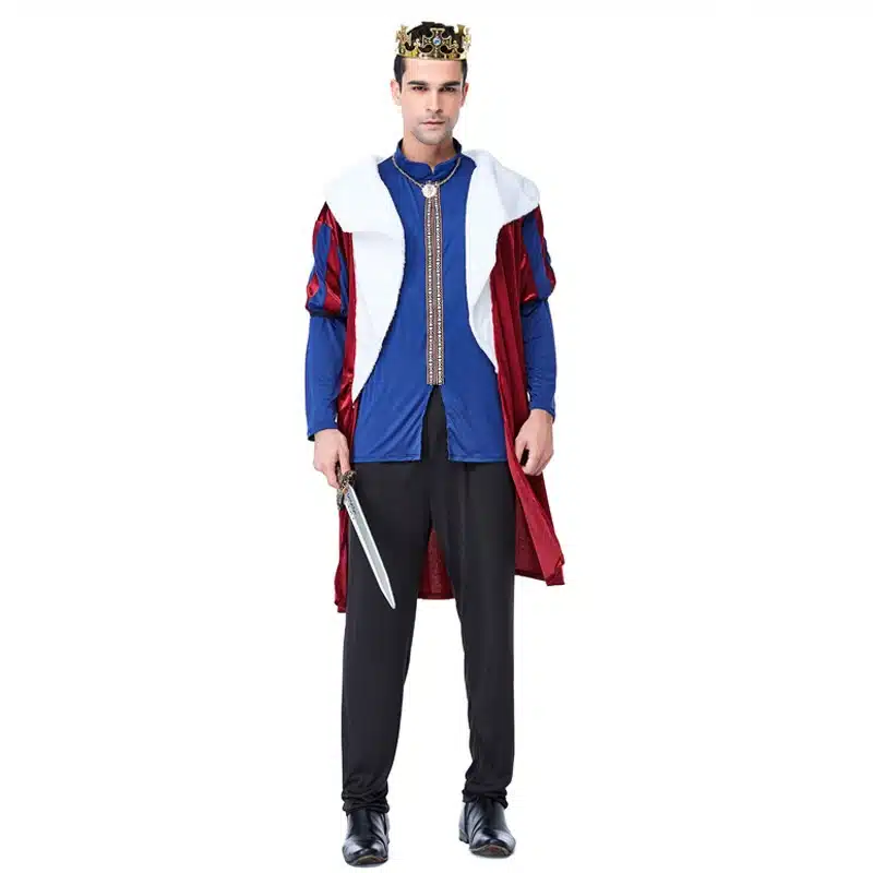 Ce costume de Roi ne se résume pas à une simple tenue, il incarne un symbole d’élégance et de confiance. Sa cape rouge avec une doublure blanche assure une impression majestueuse, tandis que le pantalon noir et la chemise bleue avec des touches d’orées apportent une touche de sophistication.