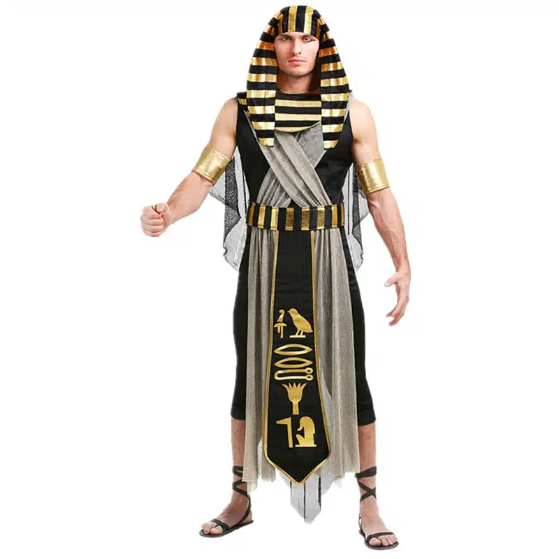 Chaque détail du costume de Pharaon et Cléopâtre a été soigneusement pensé pour vous offrir une expérience immersive. La tunique longue, ainsi que les brassards dorés, vous rappelleront la fierté et l’élégance des rois et reines d’Égypte.