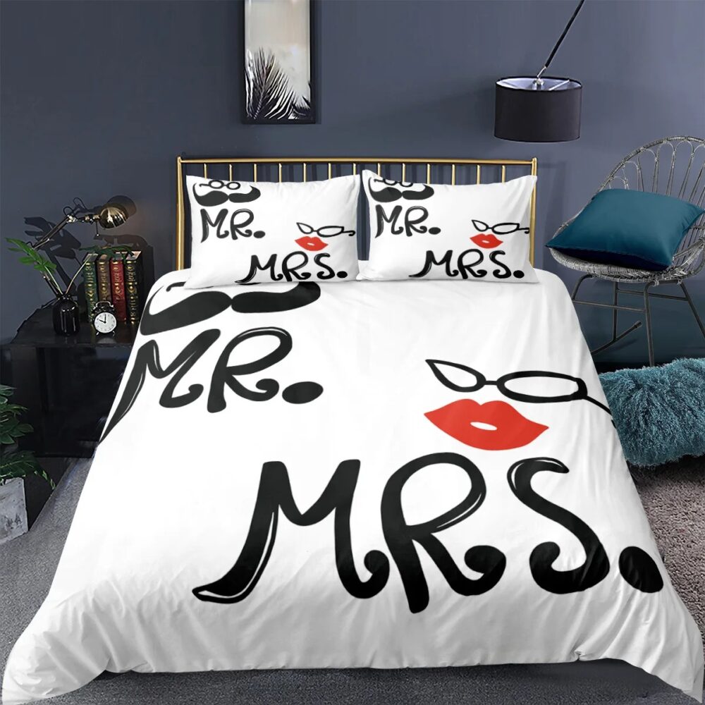 Avec la housse de couette pour couple Madame et Monsieur, chaque nuit devient une célébration de votre amour. Imaginez-vous allongé dans un lit où chaque élément raconte votre histoire. Les motifs délicatement choisis reflètent l’harmonie de votre relation, rendant chaque moment passé ensemble encore plus spécial.