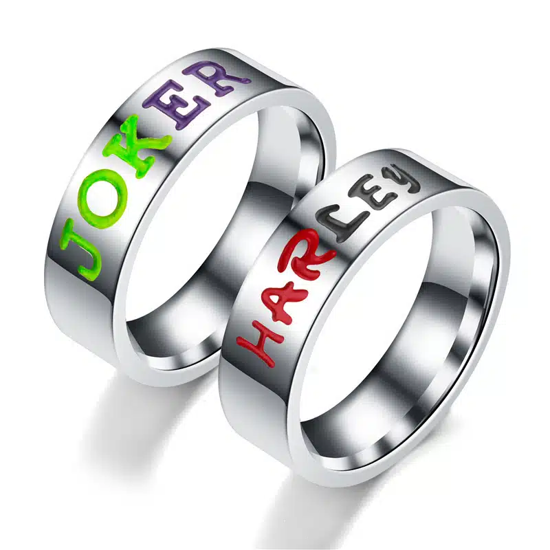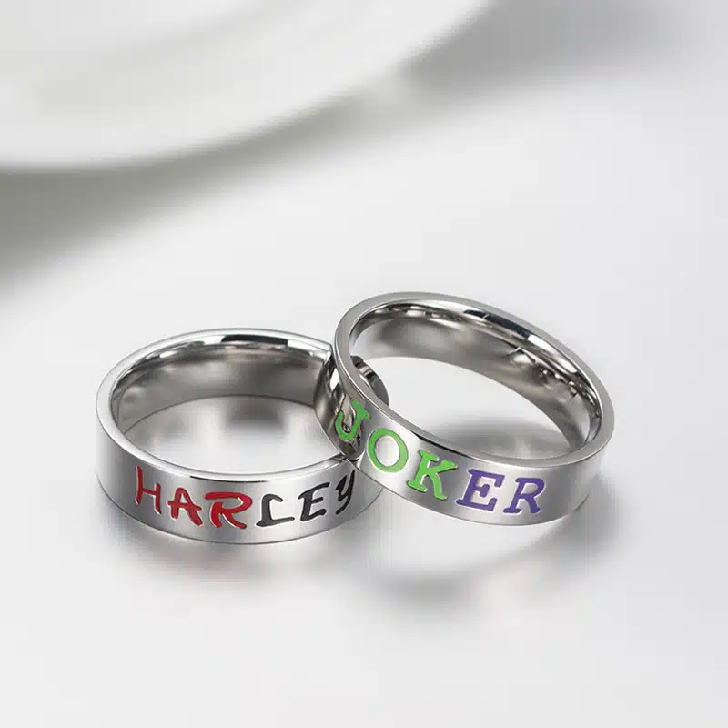En associant l’esthétique moderne et les personnages emblématiques de l’univers DC Comics, cette bague Couple Joker se distingue par ses lettres en relief et son design contemporain.