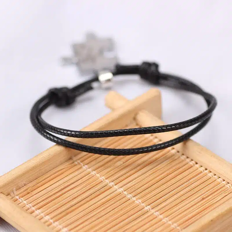 Ajustable grâce à ses nœuds coulissants, ce bracelet puzzle s’adapte parfaitement à tous les poignets, garantissant un confort optimal tout au long de la journée.