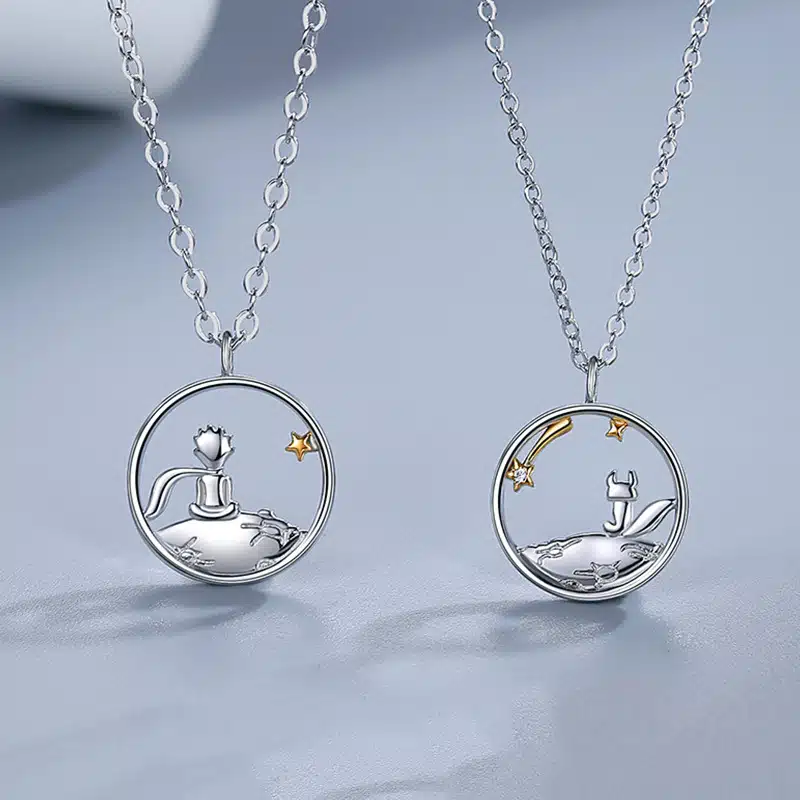 Ce collier de couple Le Petit Prince est l’idée cadeau idéale pour célébrer la Saint-Valentin ou un moment spécial de votre relation. En choisissant ce bijou, vous ne donnez pas seulement un accessoire, mais une promesse d’amour et de magie.