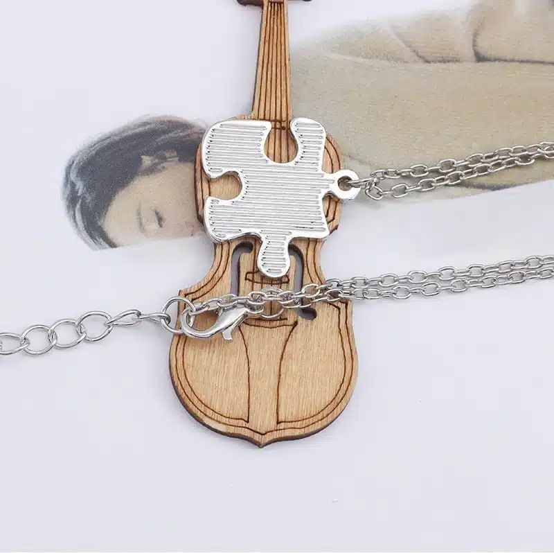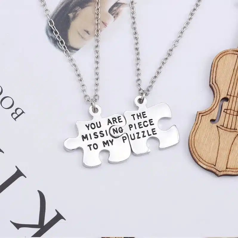 Ce collier couple puzzle original est une idée de cadeau qui ne manquera pas d’émouvoir. Que ce soit pour un anniversaire, un anniversaire de rencontre ou simplement pour raviver la flamme, ce bijou saura toucher le cœur de votre partenaire.