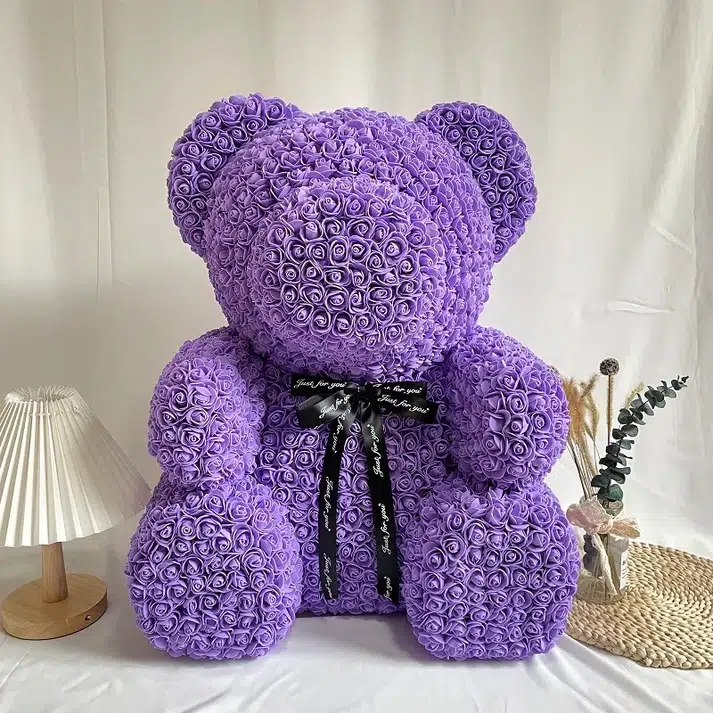 Le Grand Ours en Rose incarne la quintessence du romantisme. Chaque rose qui compose cet ours représente des émotions, des souvenirs, des promesses d’un amour profond et sincère.