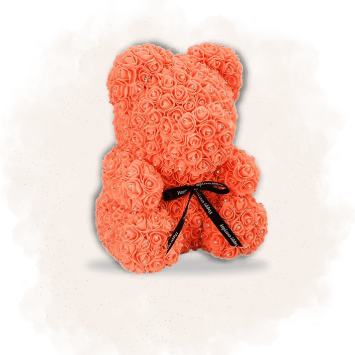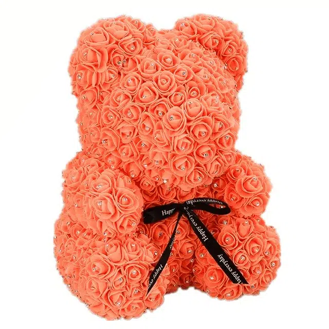 Contrairement aux fleurs naturelles qui se fanent, cet ours en rose éternelle orange évoque un amour intemporel, capable de résister aux épreuves du temps.