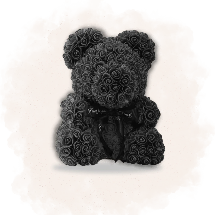 En choisissant notre Ours en Rose Noir, vous témoignez de votre attention et de votre affection. Ce cadeau original, tout en roses artificielles, conserve sa beauté au fil du temps, tout comme votre amour.