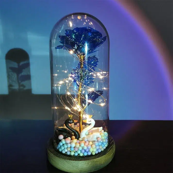 Chaque élément de la Rose Éternelle Cygne a été soigneusement sélectionné pour évoquer des émotions. La couleur bleue de la fleur symbolise la sérénité et la fidélité, tandis que la présence des cygnes est souvent associée à l’amour véritable. En intégrant cette pièce unique à votre décor, vous créez une atmosphère douce et romantique.