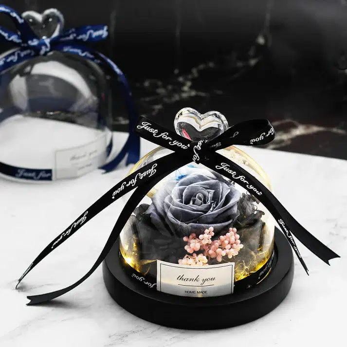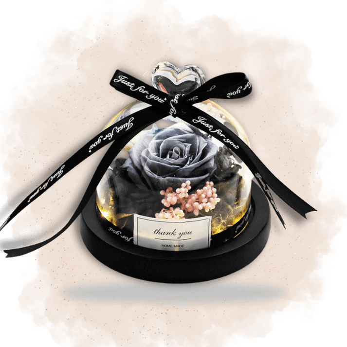 La Rose Éternelle sous Cloche Grise ne se contente pas d’être un cadeau, elle devient aussi une œuvre d’art intemporelle dans n’importe quelle pièce. Le socle noir et le cœur en verre au sommet apportent une touche de sophistication qui s’harmonise parfaitement avec toute décoration intérieure.