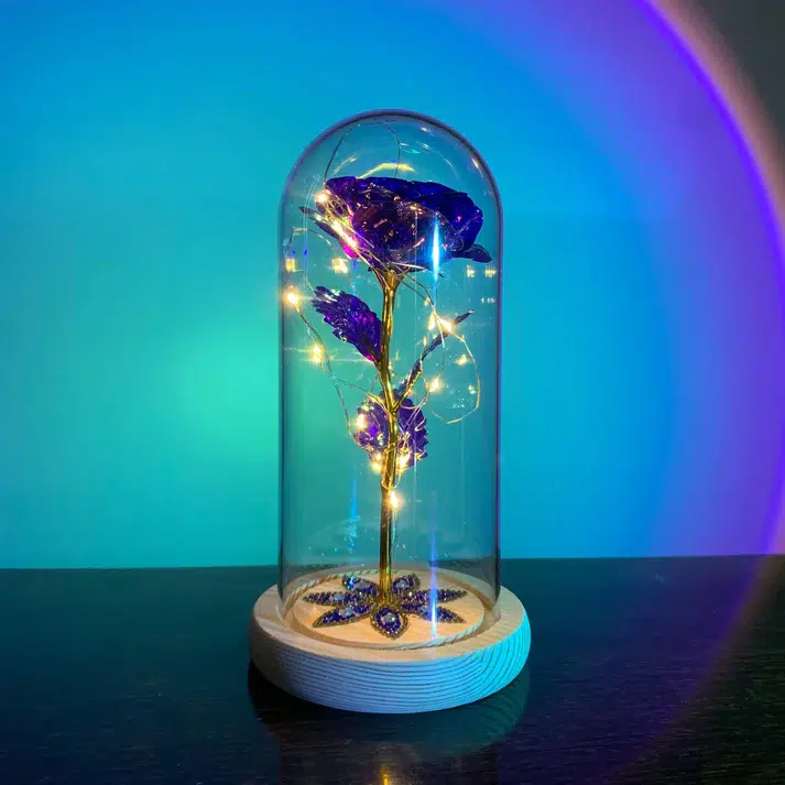 La Rose Éternelle Violette est bien plus qu’une simple décoration ; elle devient l’élément central qui évoquera douceur et tendresse. Sa base en bois clair apporte une note naturelle, tandis que le verre transparent protège la beauté délicate de la rose, lui offrant une longévité inégalée.