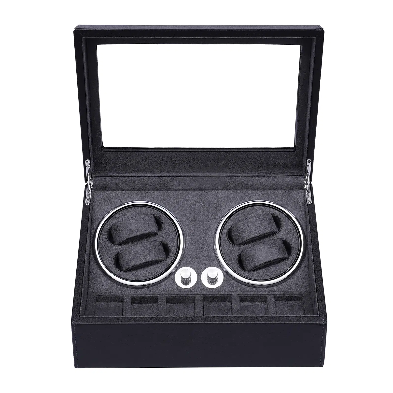 Avec deux remontoirs pour garantir que vos montres mécaniques fonctionnent à la perfection et de nombreux compartiments pour des modèles supplémentaires, elle est la solution idéale pour les amoureux de l’horlogerie. Offrez à votre partenaire une façon de chérir et préserver ses montres tout en ajoutant une touche d’élégance à sa collection.