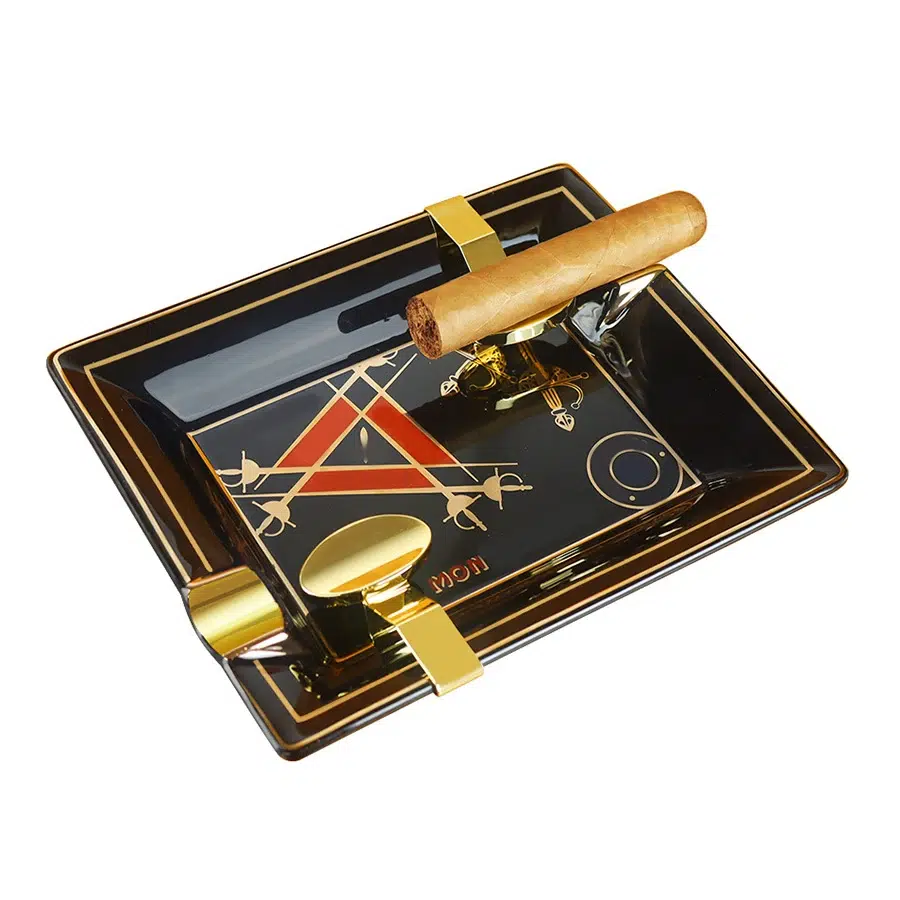Ce cendrier à cigare classique, de taille moyenne, est parfaitement conçu pour accueillir plusieurs cigares en toute sécurité. Sa finition soignée et ses détails graphiques en font un véritable objet d’art, continuant à faire forte impression même lorsqu’il est inoccupé.