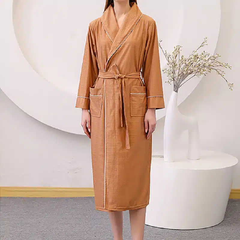 Ce peignoir pour couple marron unicolore est idéal pour créer une atmosphère chaleureuse et accueillante chez vous. Avec une longueur allant jusqu’aux chevilles, il assure une sensation de chaleur tout en offrant une liberté de mouvement.