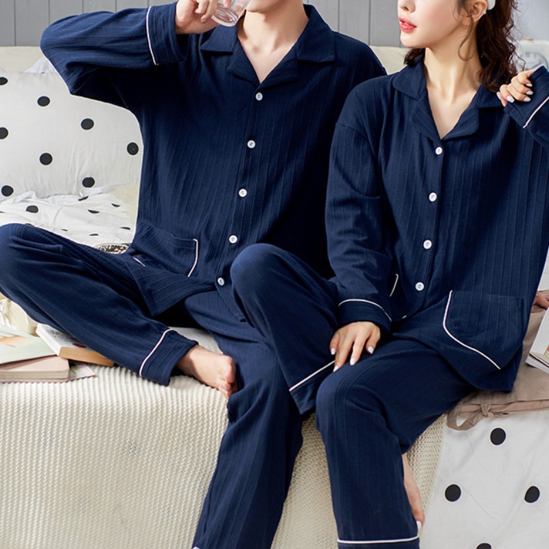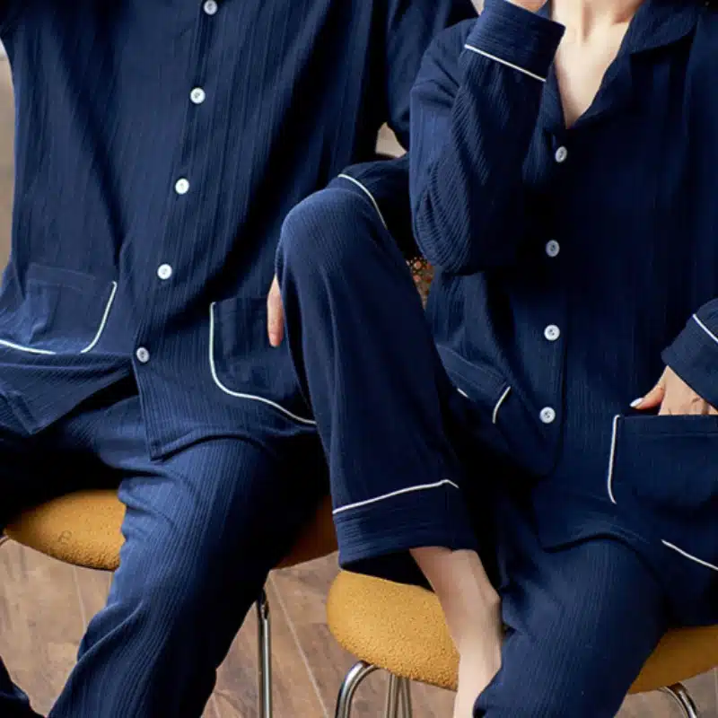 Ce pyjama bleu navy pour couple est réalisé dans un tissu doux qui caresse délicatement la peau, vous permettant de profiter d’une tranquillité d’esprit tout au long de la nuit.