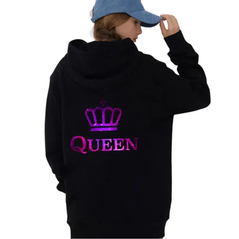 Ce sweat à capuche “Queen et King” constitue un cadeau plein de sens pour la Saint-Valentin. En l’offrant, vous partagez un message fort de connexion et d’unité. Quelle plus belle manière de célébrer votre amour qu’en portant les emblèmes de votre royalité confectionnés ensemble ?